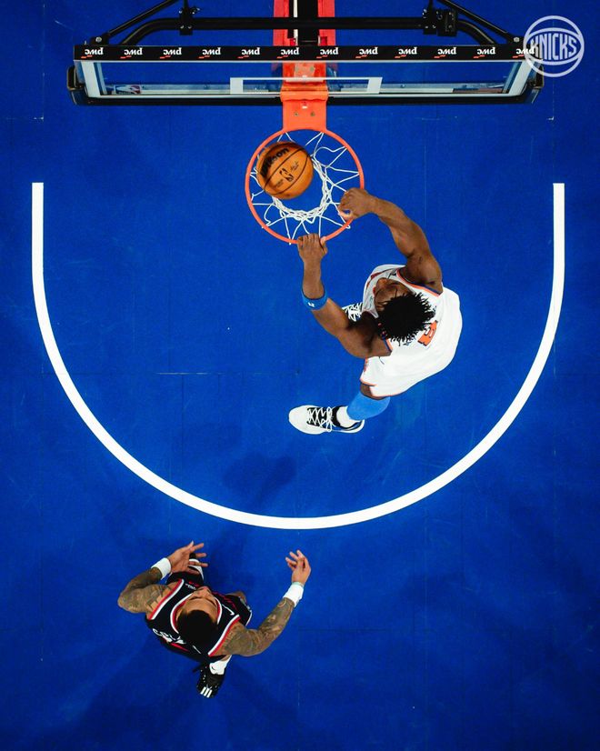 尼克斯队首发阵容:布伦森、麦克布莱德、布里奇斯、阿奴诺比、唐斯